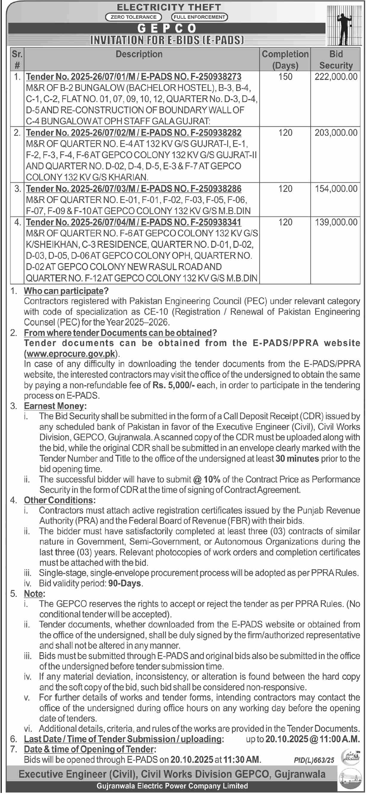 Water Supply Scheme / Drains / Sewerage, WAPDA, Roads, Repair & Maintenance, Engineering, Construction, Buildings