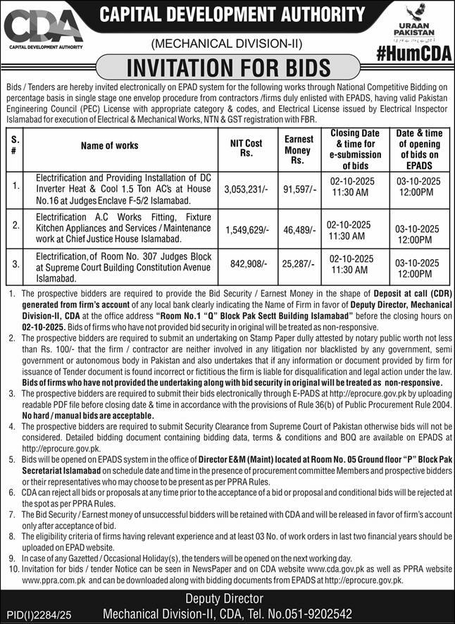Mechanical, Machinery, General Order Supply, Electronics, Electrical, Development Authority