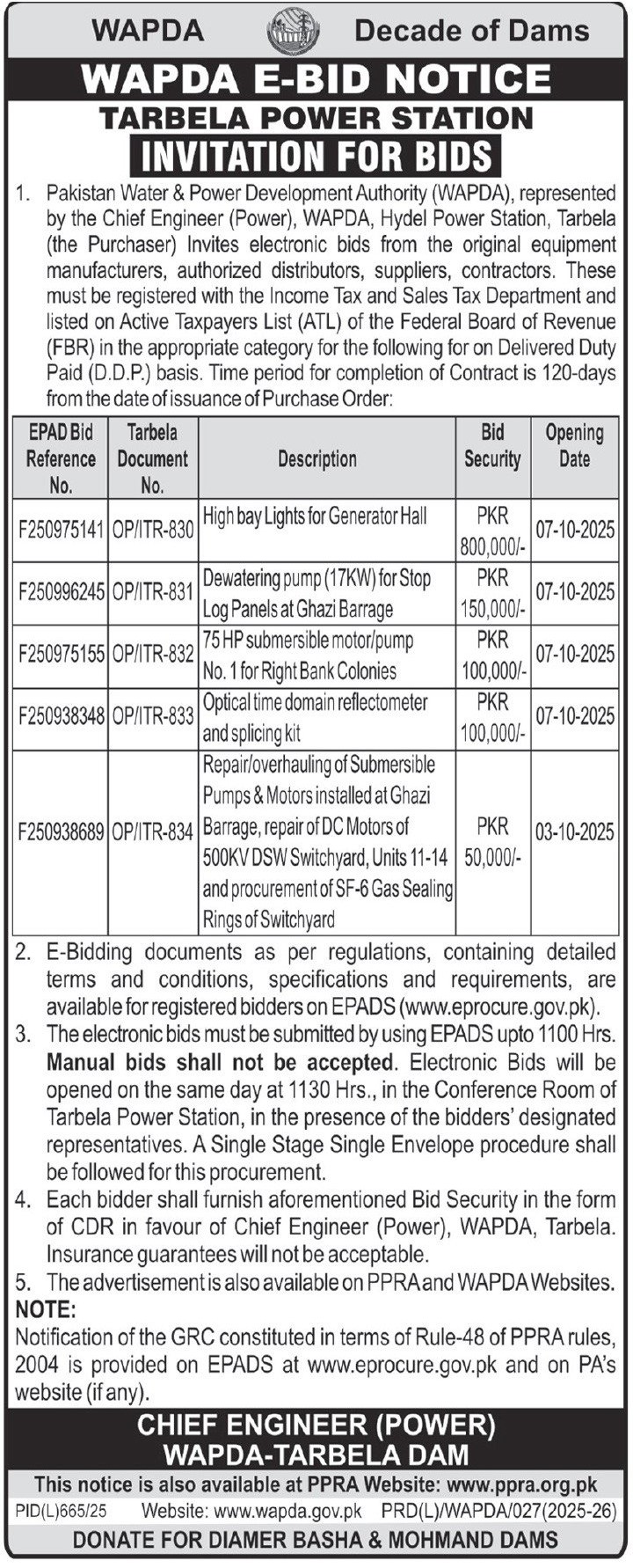 WAPDA, Pumps, Mechanical, Machinery, Light, General Order Supply, Electronics, Electrical