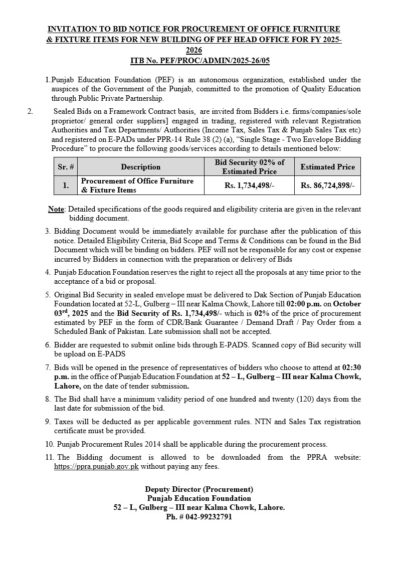 Punjab Education Foundation, Lahore