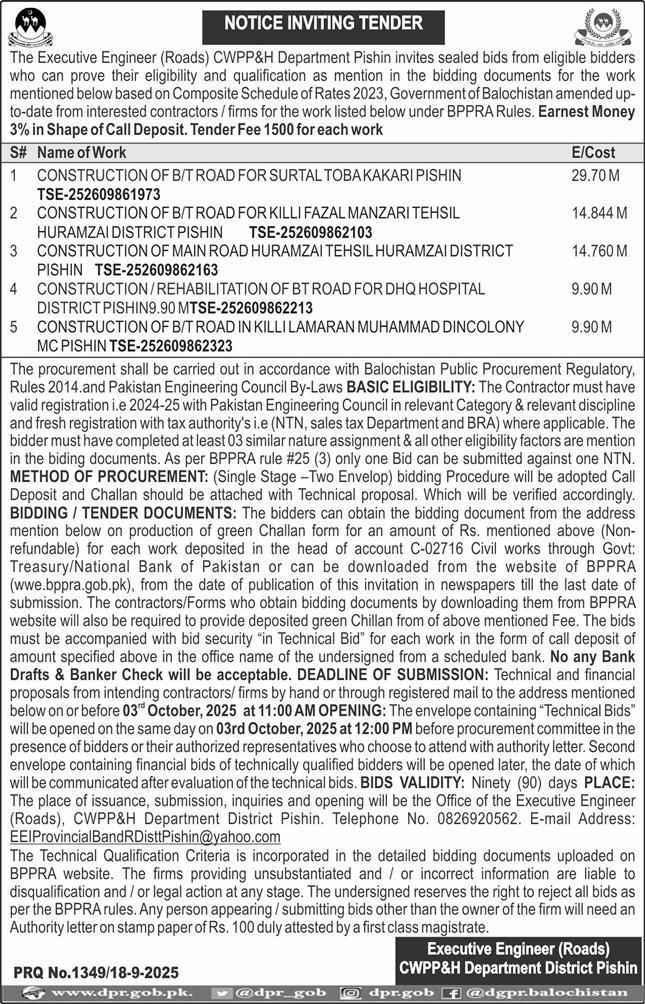 Water Supply Scheme / Drains / Sewerage, Roads, Repair & Maintenance, Engineering, Construction, Buildings