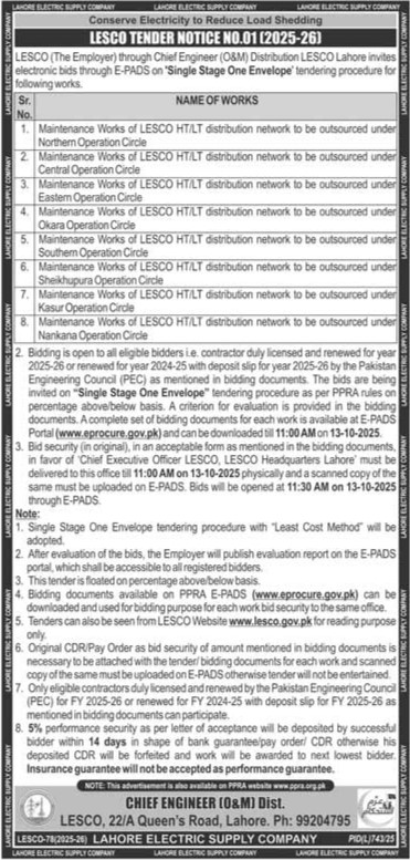 WAPDA, Repair & Maintenance, Mechanical, Machinery, General Order Supply, Engineering, Electronics, Electrical, Construction