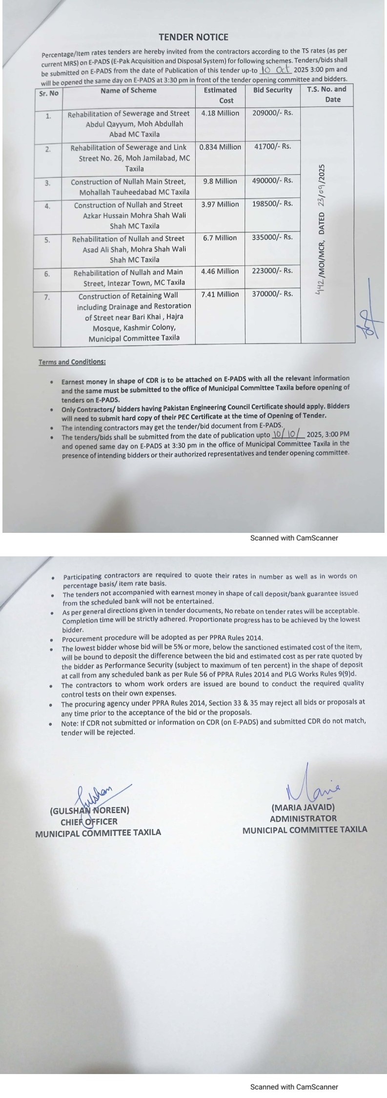 Water Supply Scheme / Drains / Sewerage, Roads, Repair & Maintenance, Engineering, Construction, Buildings