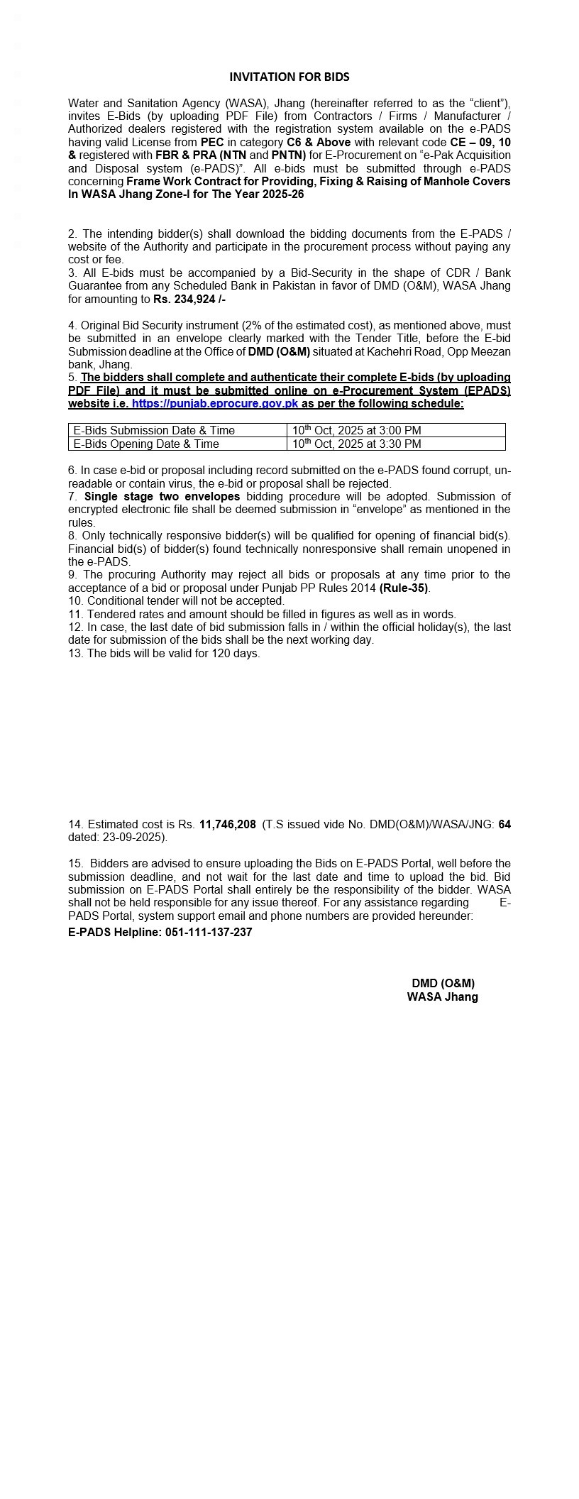 Water Supply Scheme / Drains / Sewerage, Roads, Repair & Maintenance, Engineering, Construction, Buildings