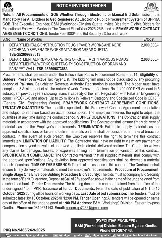 Water Supply Scheme / Drains / Sewerage, Roads, Repair & Maintenance, Engineering, Construction, Buildings