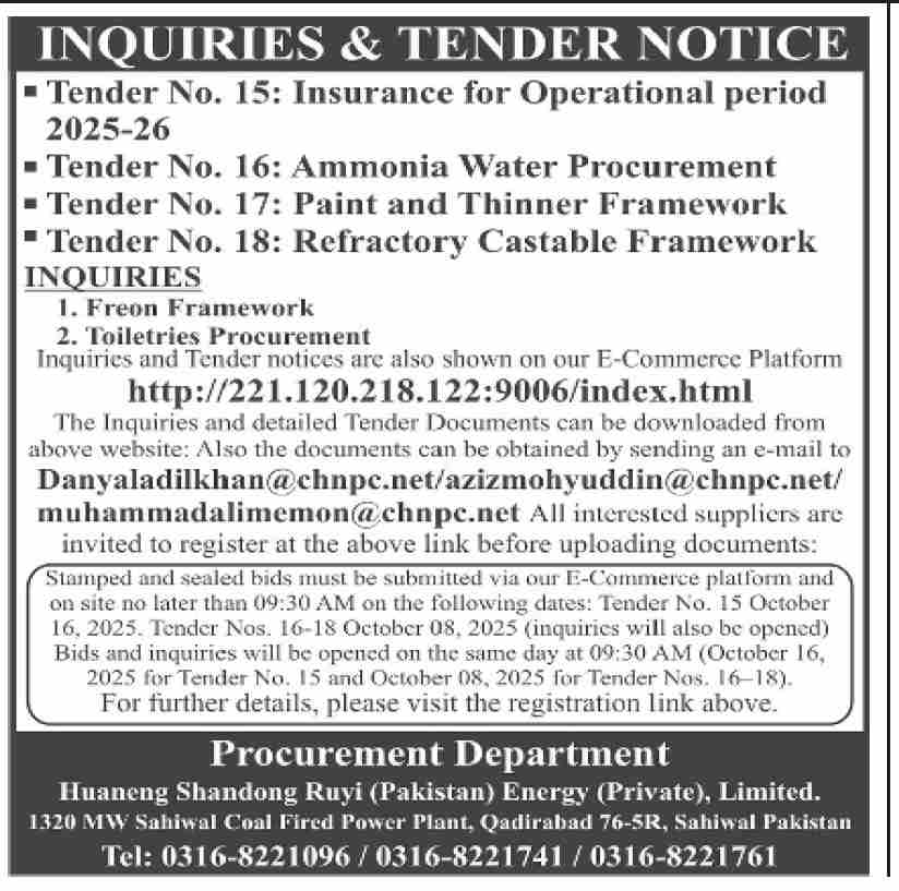 Tender Description