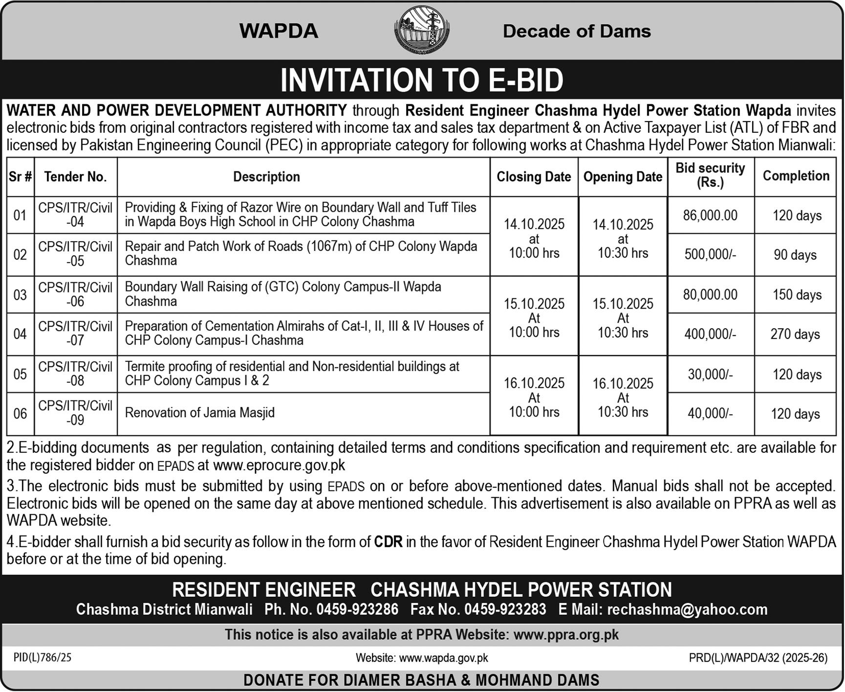 Water Supply Scheme / Drains / Sewerage, WAPDA, Roads, Repair & Maintenance, Engineering, Construction, Buildings