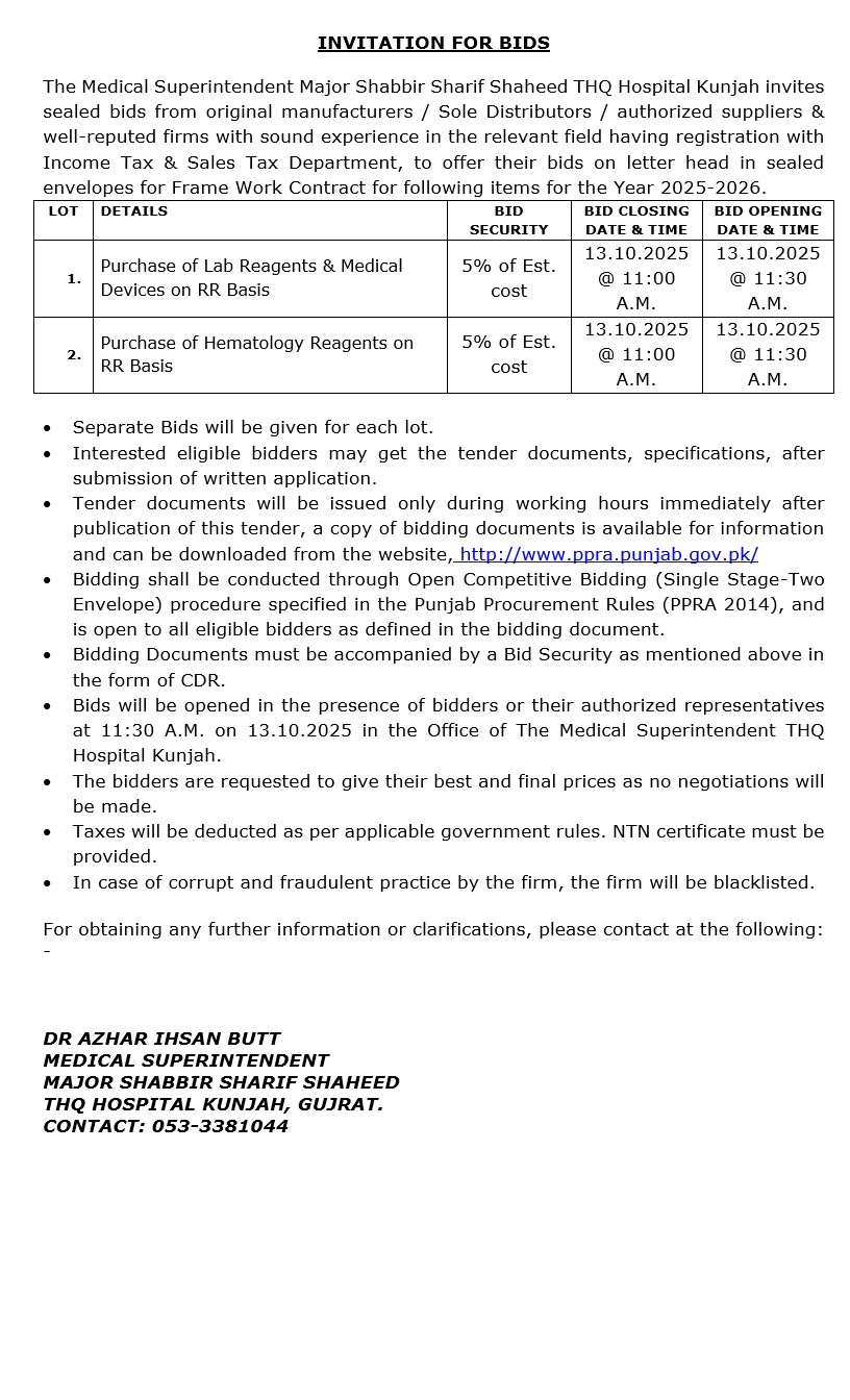 Tender Description