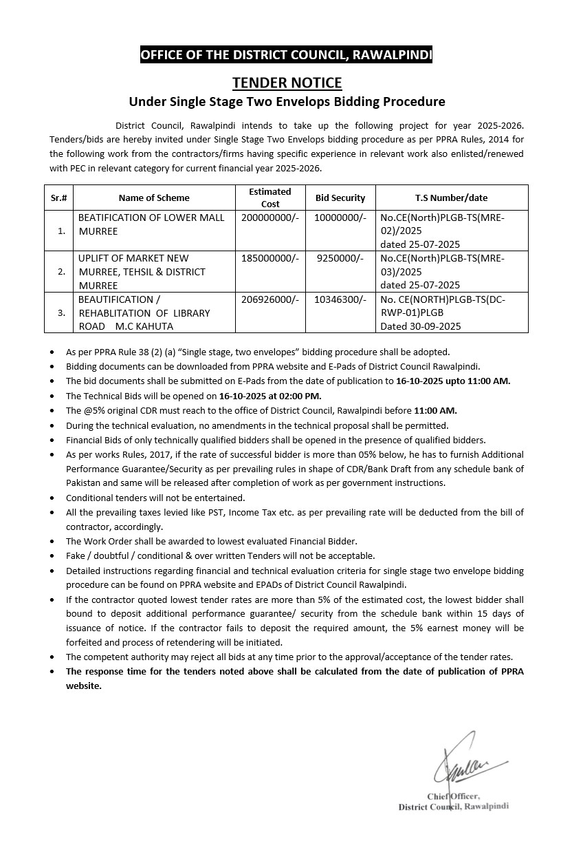 Water Supply Scheme / Drains / Sewerage, Roads, Repair & Maintenance, Horticulture, Engineering, Construction, Buildings