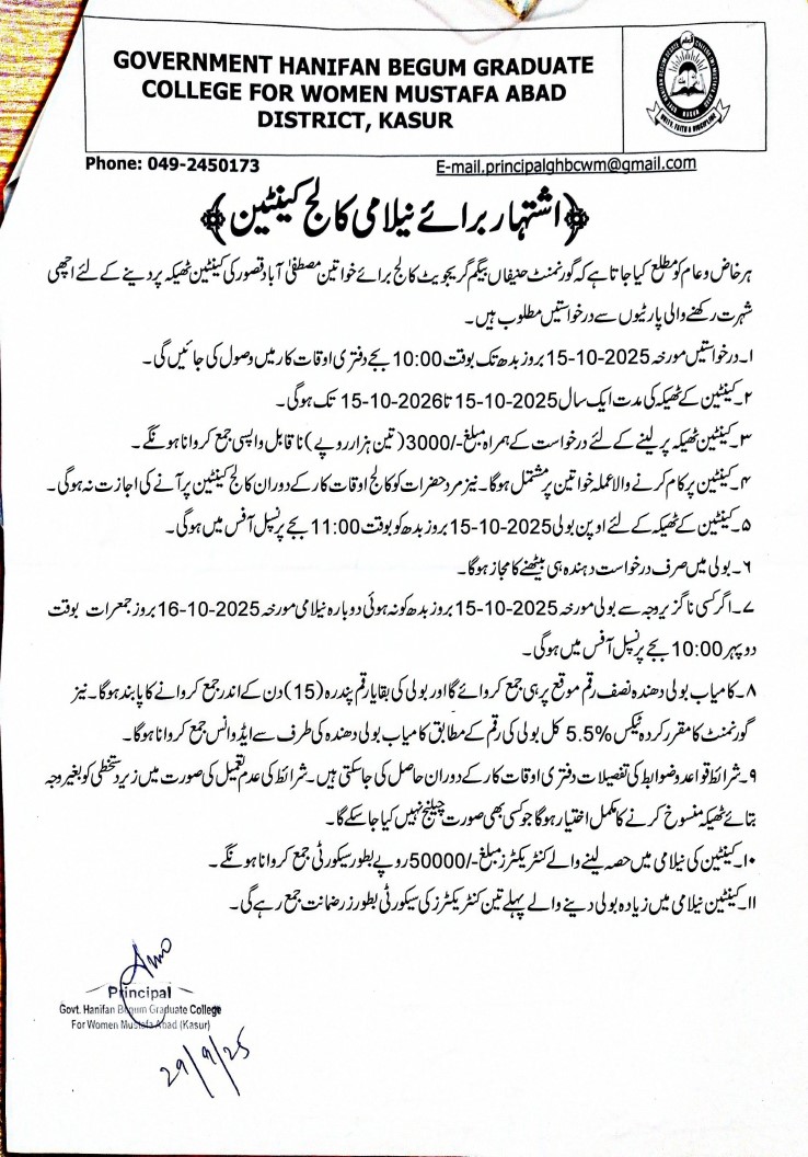 Tender Description