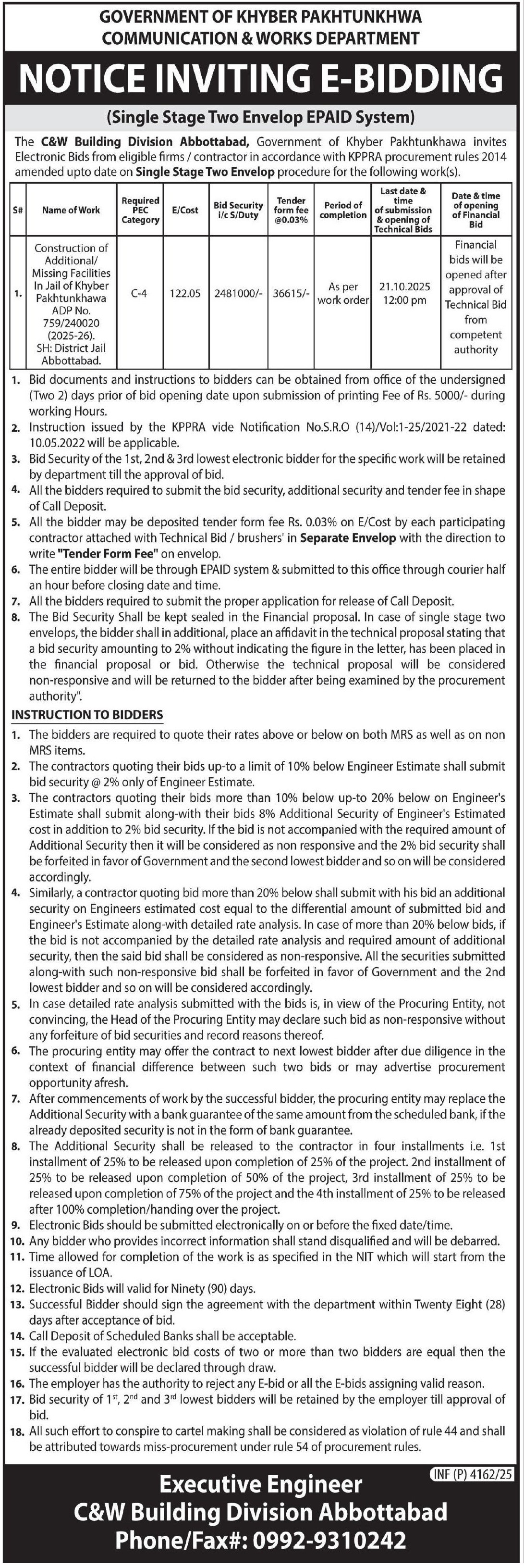 Water Supply Scheme / Drains / Sewerage, Roads, Repair & Maintenance, Engineering, Construction, Communication & Works, Buildings, Addition & Alteration
