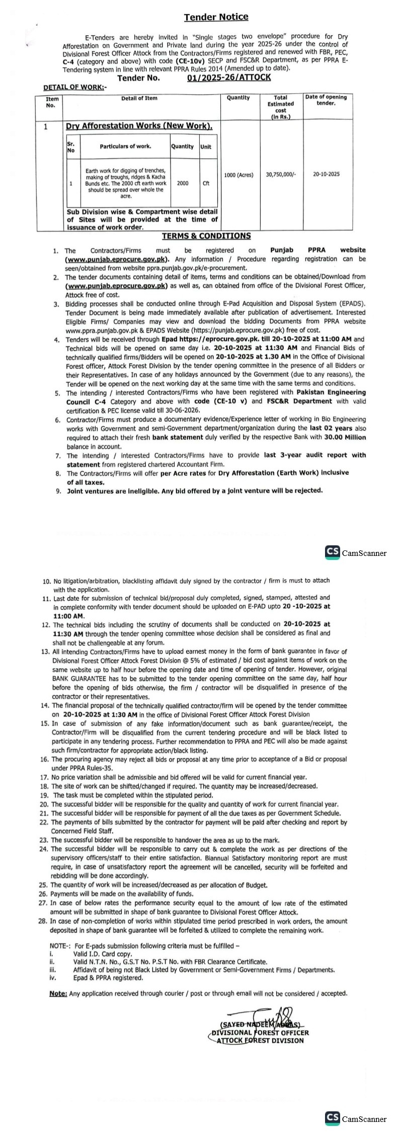 Tender Description