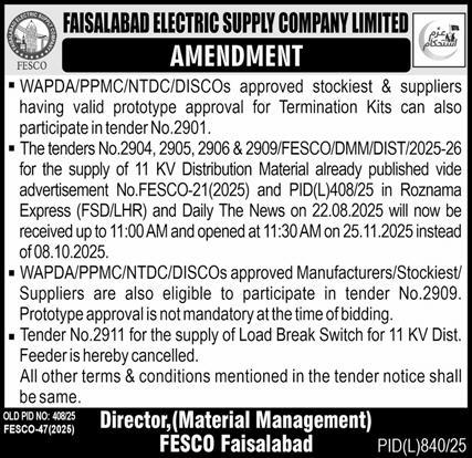 WAPDA, Steel, Mechanical, Machinery, General Order Supply, Energy, Electronics, Electrical, Corrigendum/Addendum , Cables