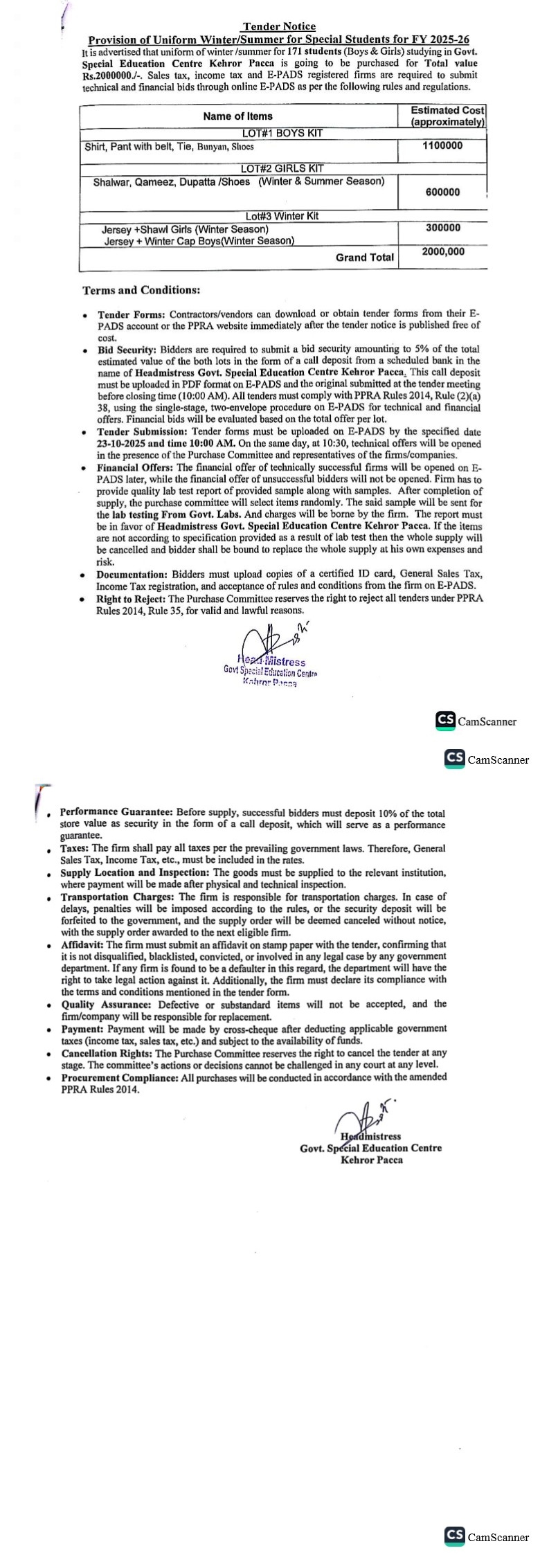 Tender Description