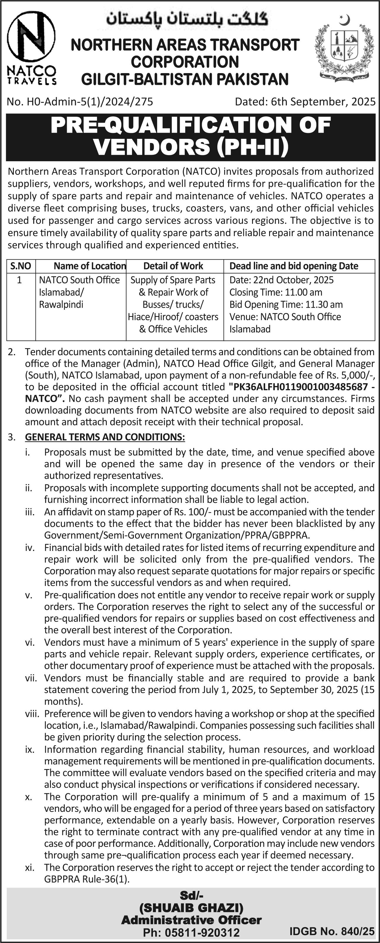 Northern Areas Transport Corporation Gilgit-Baltistan