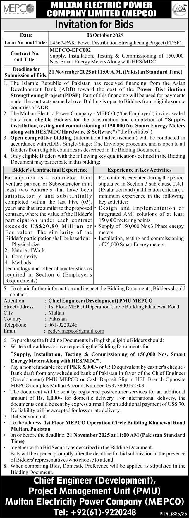 WAPDA, Mechanical, Machinery, General Order Supply, Energy, Electronics, Electrical