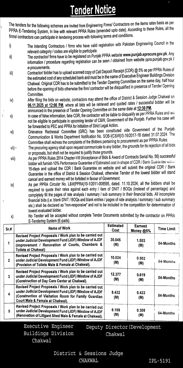 Water Supply Scheme / Drains / Sewerage, Roads, Repair & Maintenance, Engineering, Construction, Buildings