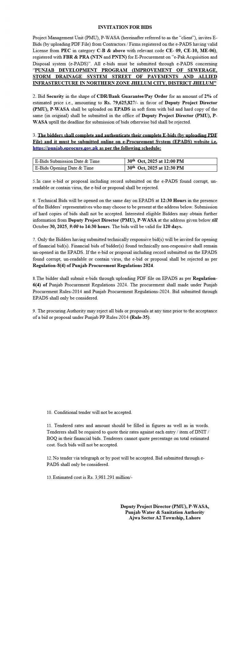 Water Supply Scheme / Drains / Sewerage, WASA, Roads, Repair & Maintenance, LDA, Engineering, Development Authority, Construction, Buildings