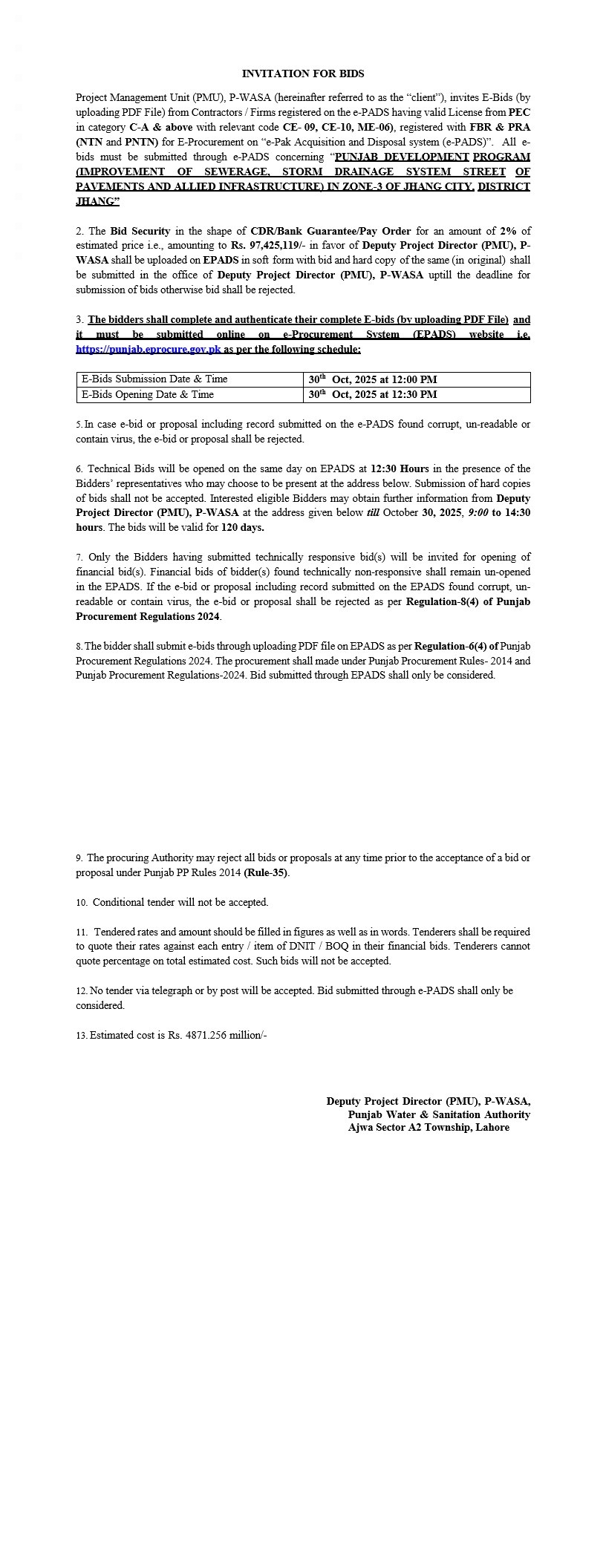 Water Supply Scheme / Drains / Sewerage, WASA, Roads, Repair & Maintenance, LDA, Engineering, Development Authority, Construction, Buildings