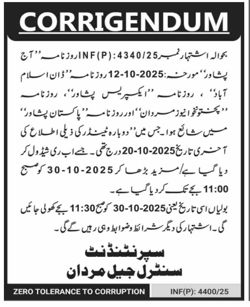 General Order Supply, Food / Soap etc., Corrigendum/Addendum