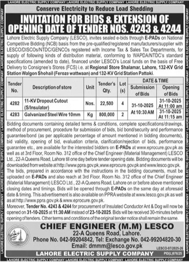 WAPDA, Mechanical, Machinery, General Order Supply, Energy, Electronics, Electrical