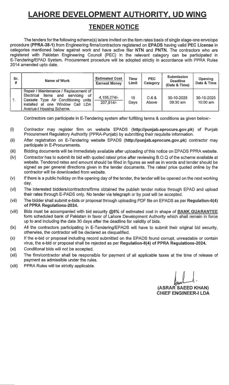 Mechanical, Machinery, LDA, General Order Supply, Electronics, Electrical, Development Authority, Air Conditioning