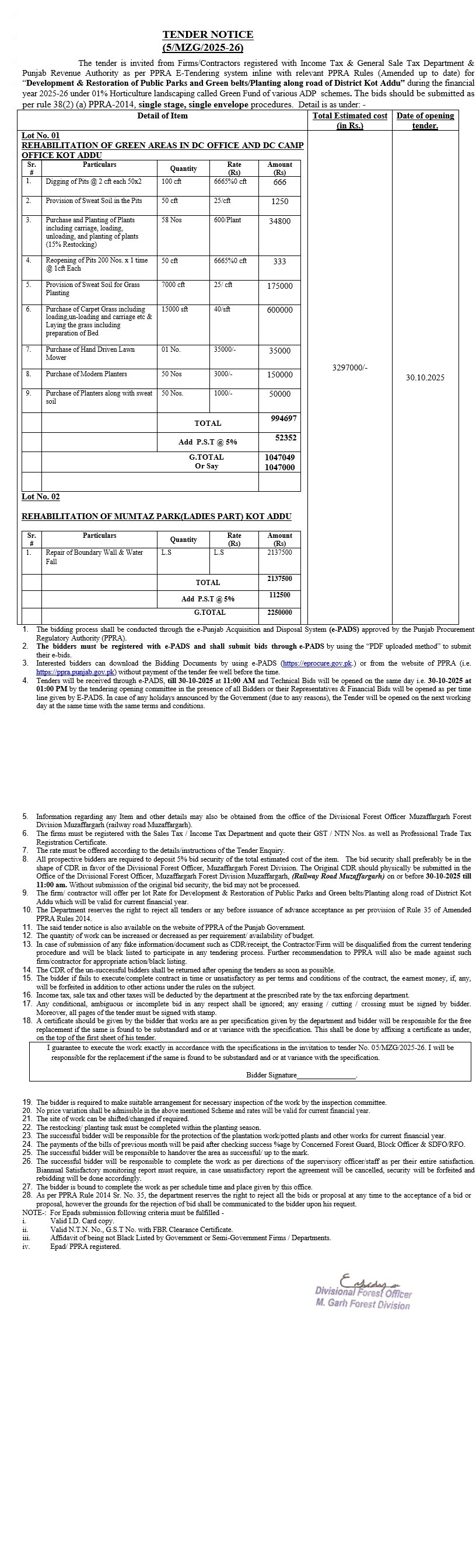 Water Supply Scheme / Drains / Sewerage, Roads, Repair & Maintenance, Horticulture, Engineering, Construction, Buildings