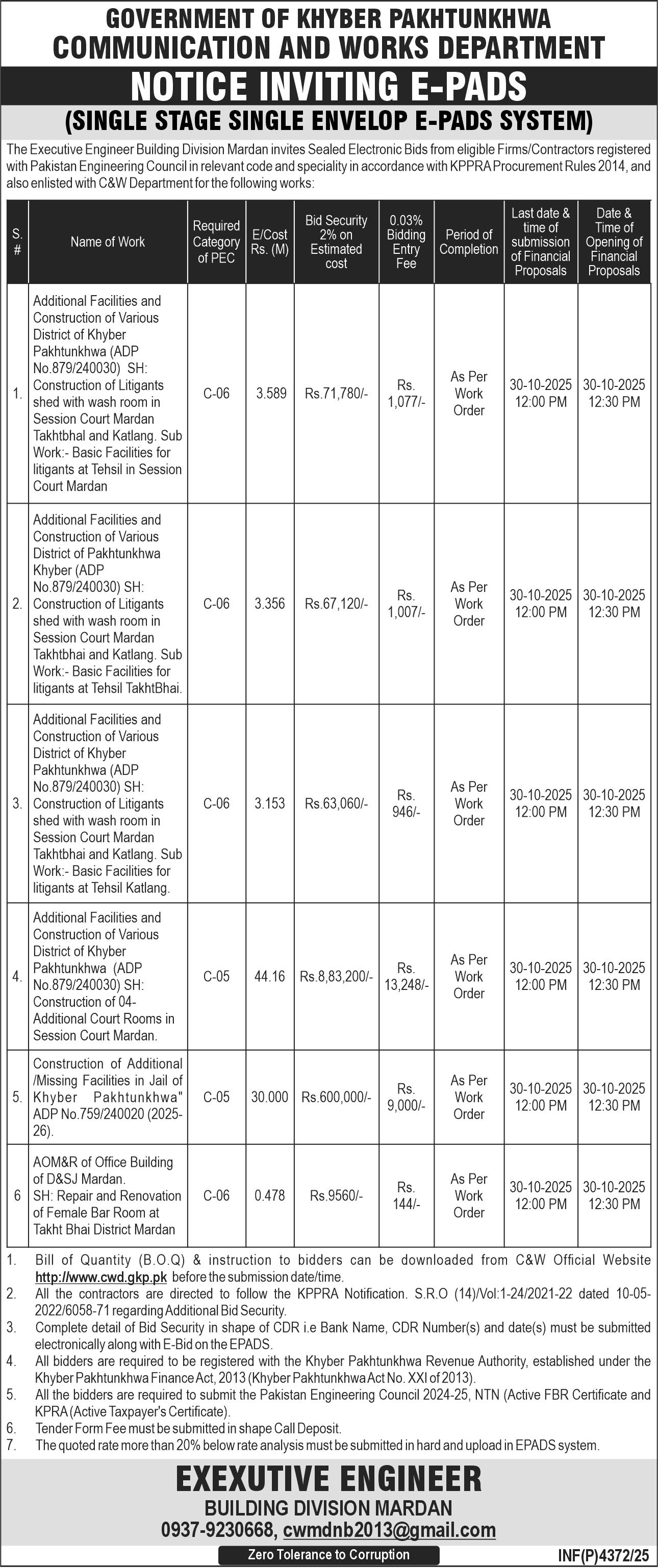 Water Supply Scheme / Drains / Sewerage, Roads, Repair & Maintenance, Engineering, Construction, Communication & Works, Buildings