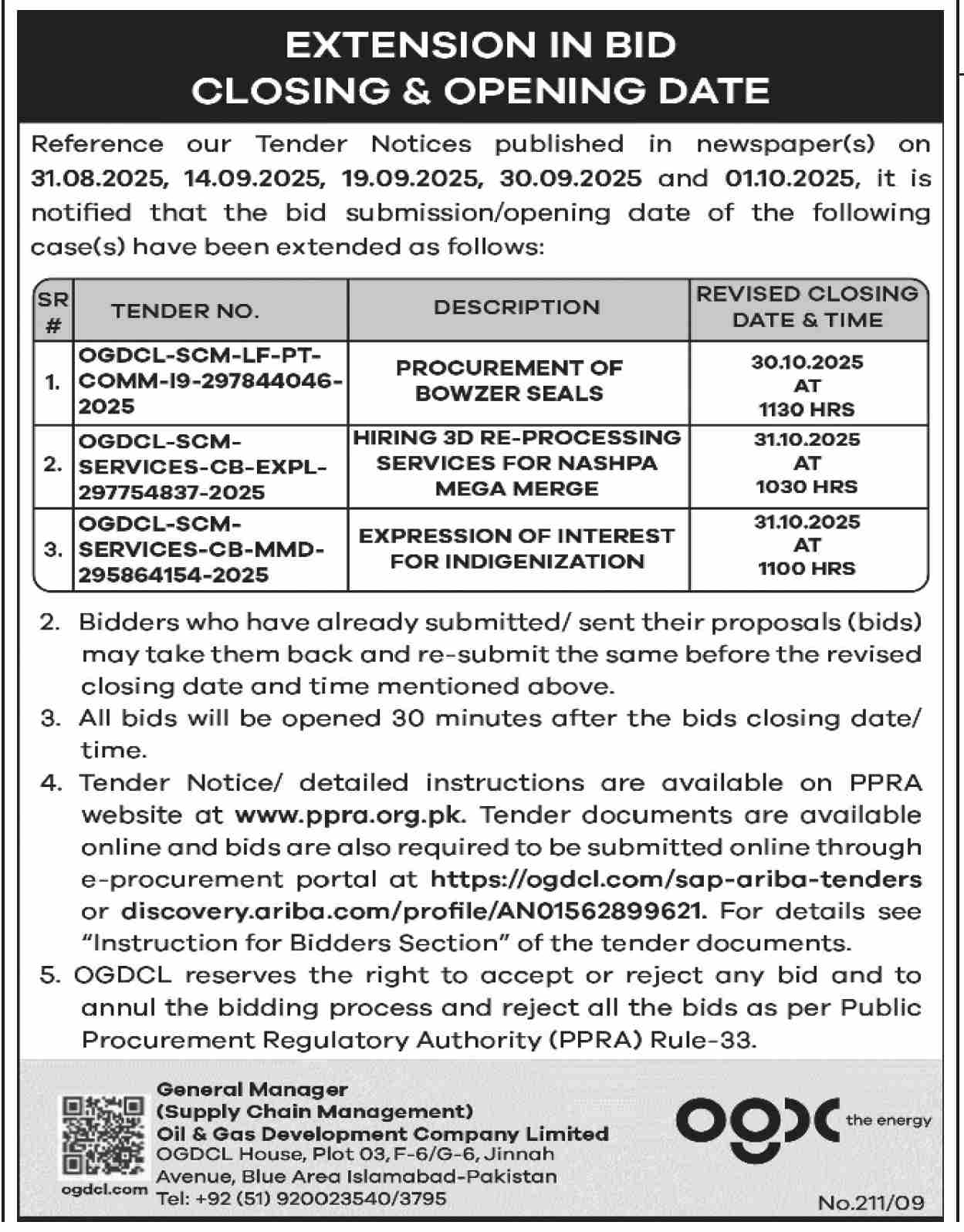 Transportation, Services Required, OGDCL, OGDCL, Mechanical, Machinery, General Order Supply, Electronics, Electrical, Consultancy