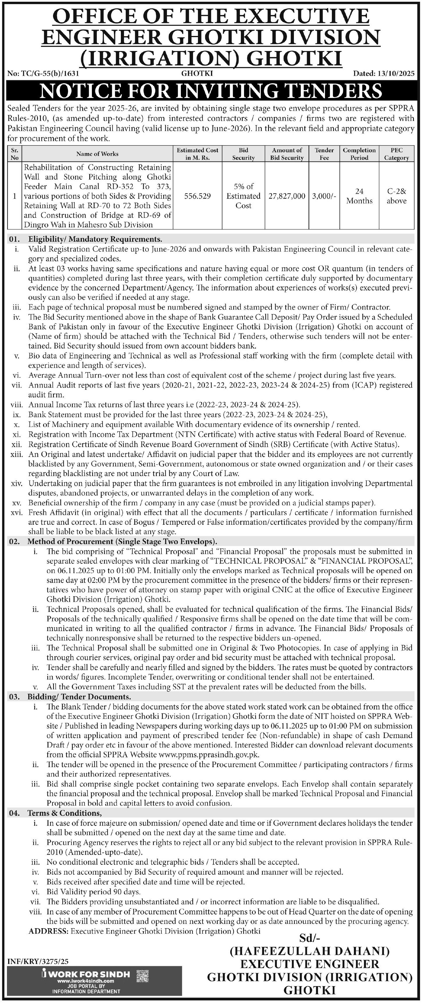 Water Supply Scheme / Drains / Sewerage, Roads, Repair & Maintenance, Engineering, Construction, Buildings