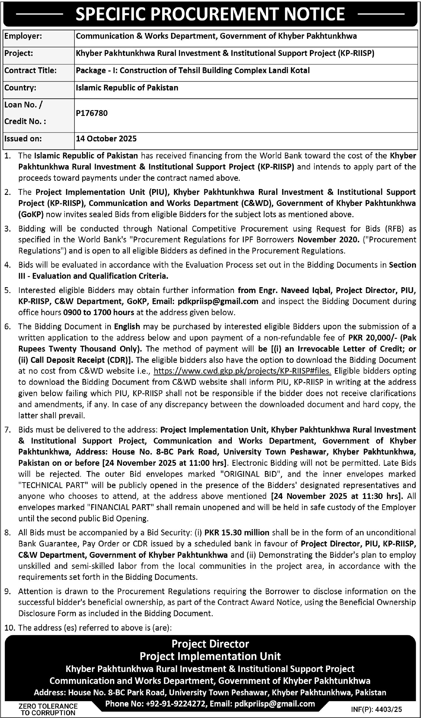 Water Supply Scheme / Drains / Sewerage, Roads, Repair & Maintenance, Engineering, Construction, Buildings