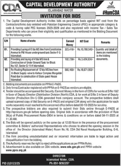 Water Supply Scheme / Drains / Sewerage, Roads, Repair & Maintenance, Engineering, Development Authority, Construction, Buildings