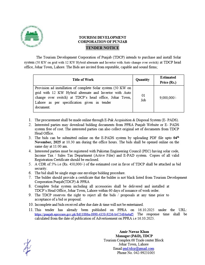 Tourism Development Corporation Punjab, Lahore