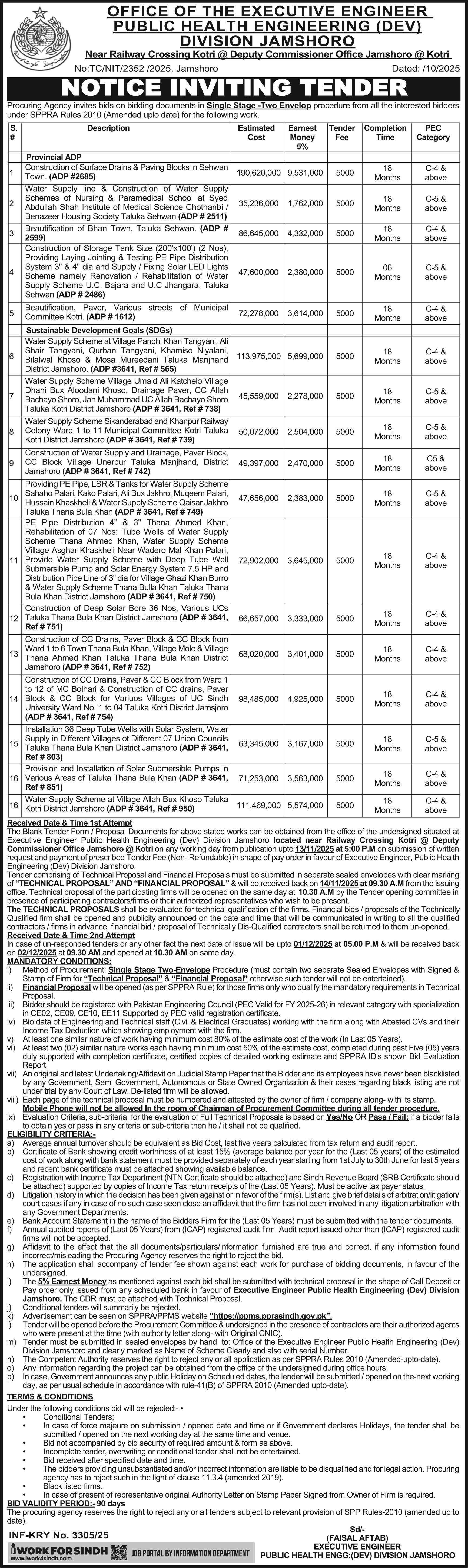 Water Supply Scheme / Drains / Sewerage, Roads, Repair & Maintenance, Horticulture, Engineering, Construction, Buildings