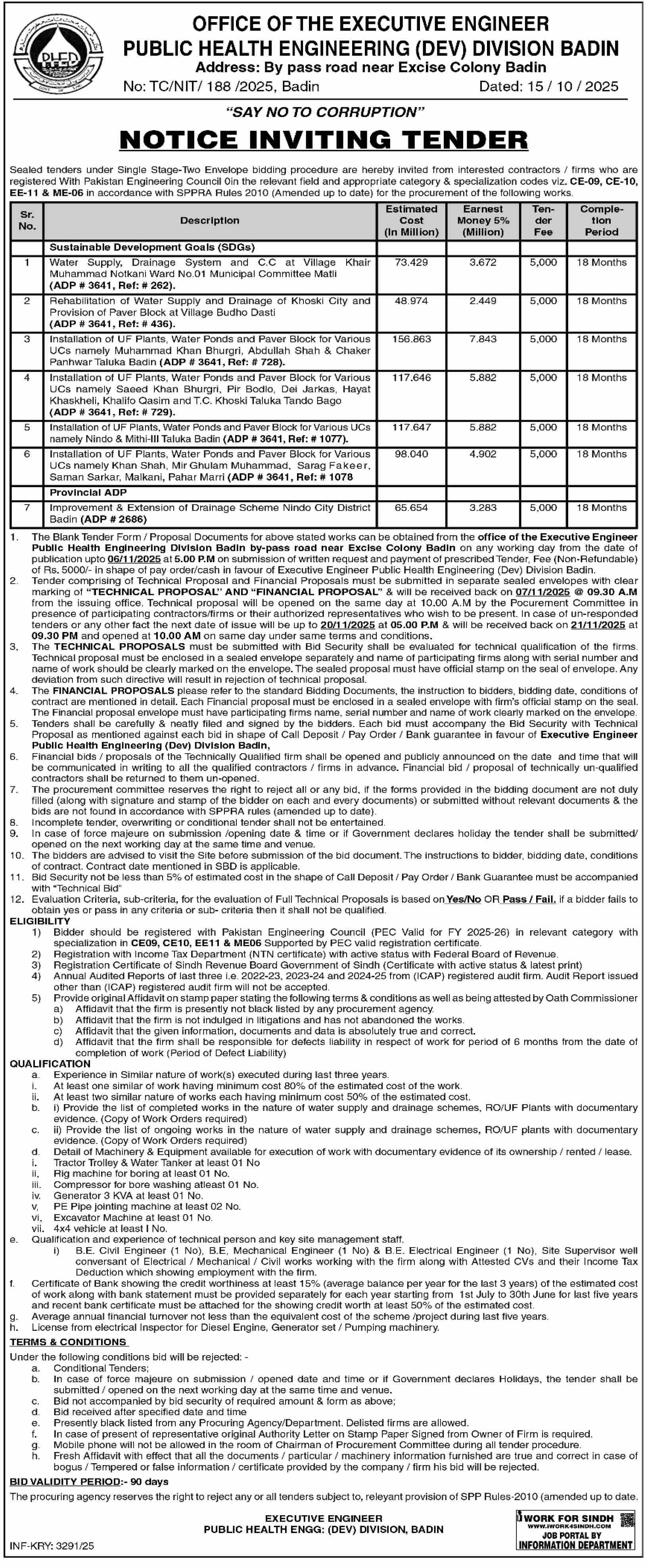 Water Supply Scheme / Drains / Sewerage, Roads, Repair & Maintenance, Engineering, Construction, Buildings