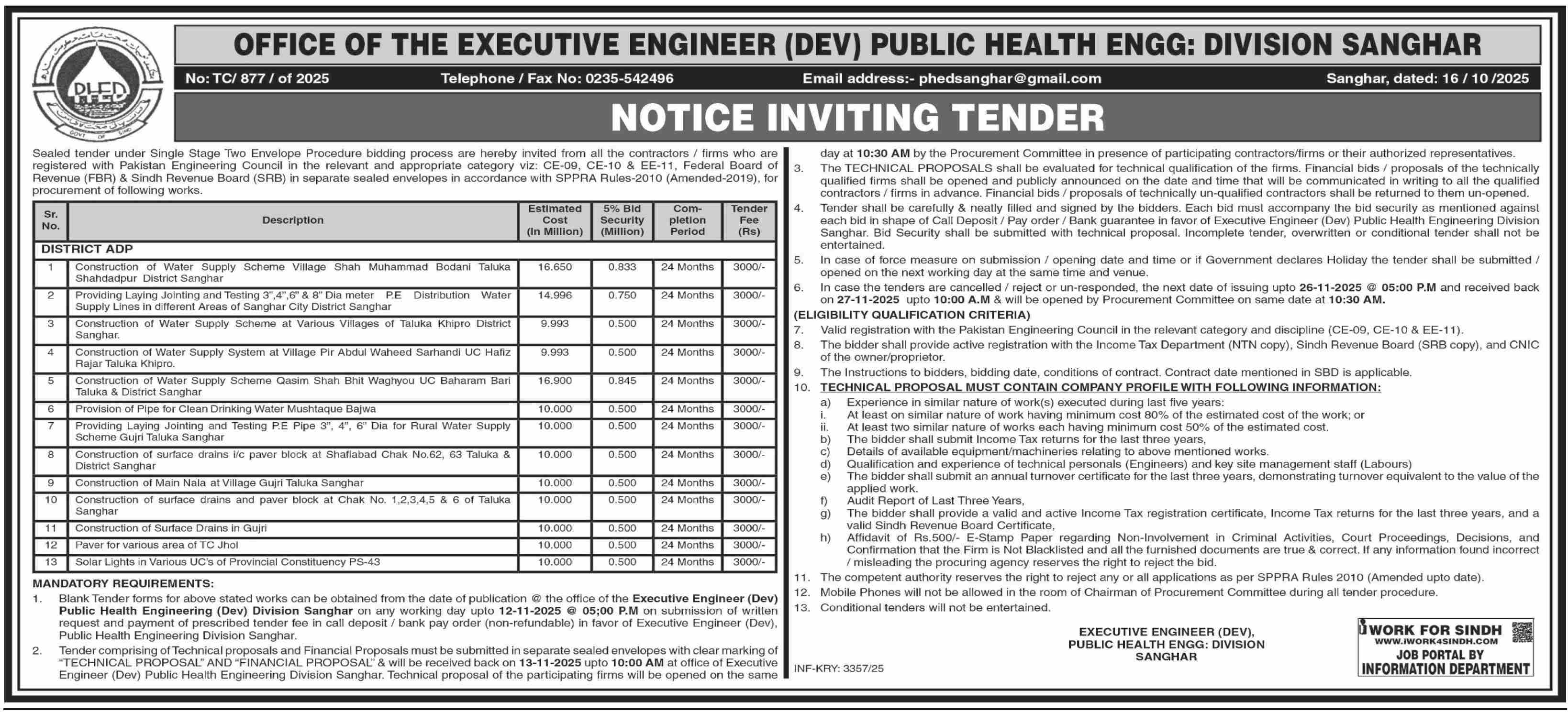 Water Supply Scheme / Drains / Sewerage, Roads, Repair & Maintenance, Light, Engineering, Energy, Construction, Buildings