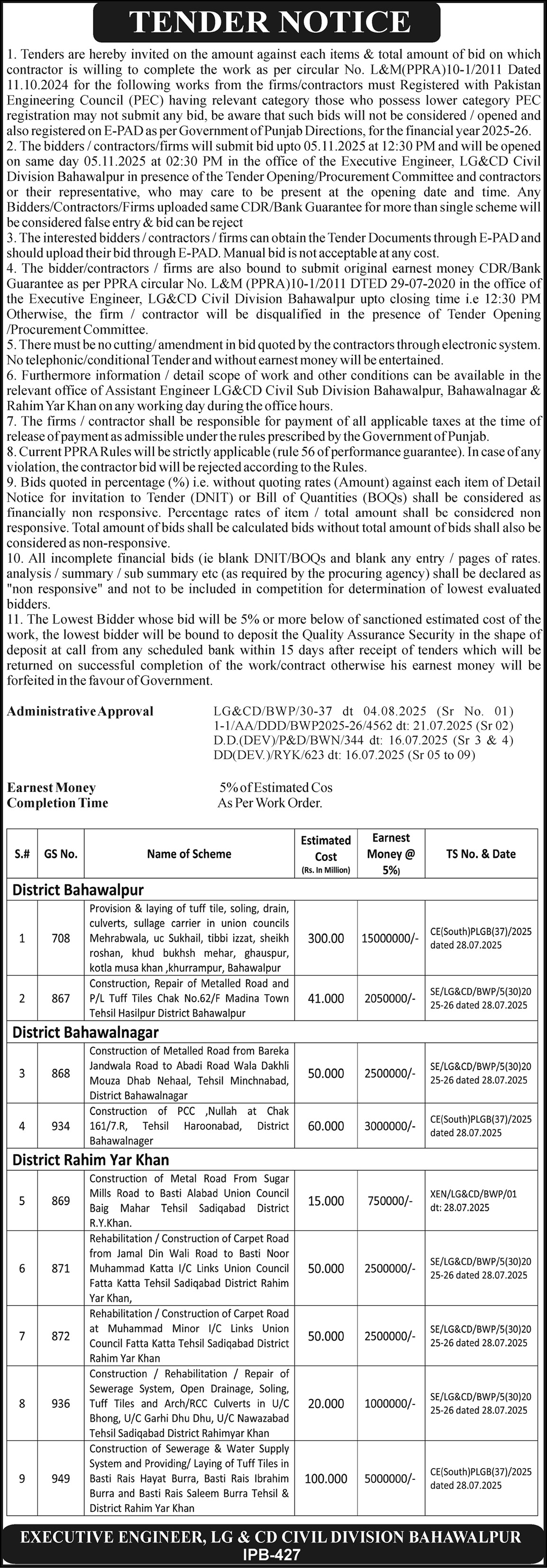 Water Supply Scheme / Drains / Sewerage, Roads, Repair & Maintenance, Engineering, Construction, Buildings