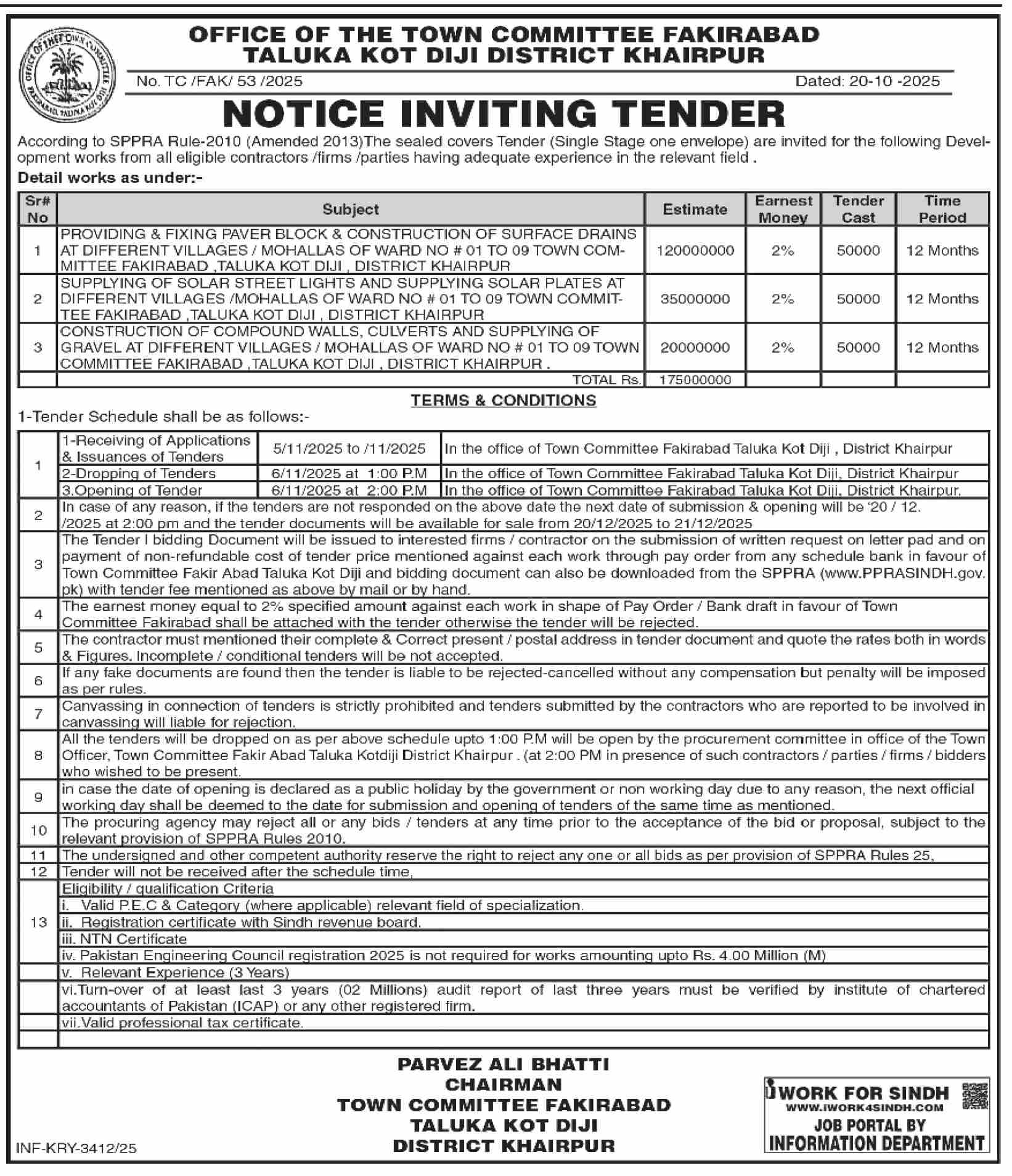 Water Supply Scheme / Drains / Sewerage, Roads, Repair & Maintenance, Engineering, Construction, Buildings