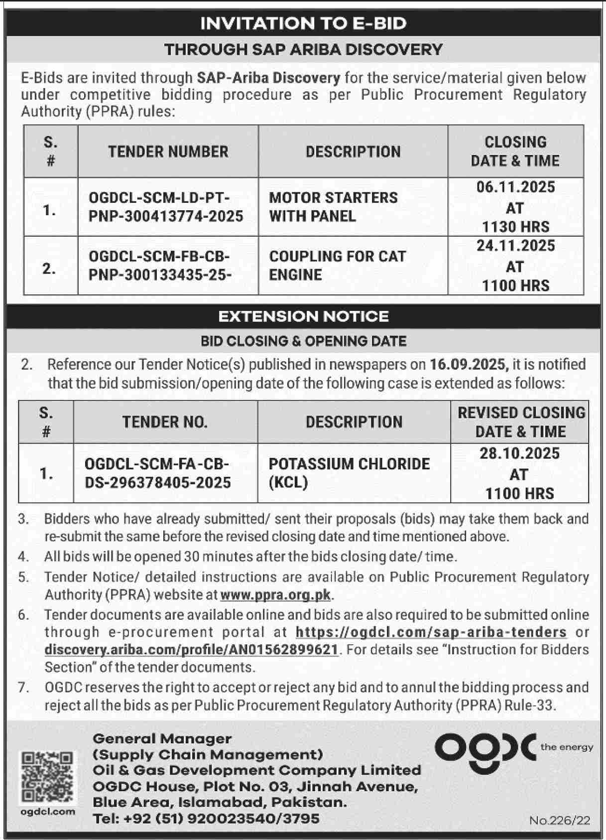 OGDCL, OGDCL, Mechanical, Machinery, General Order Supply, Electronics, Electrical, Chemicals