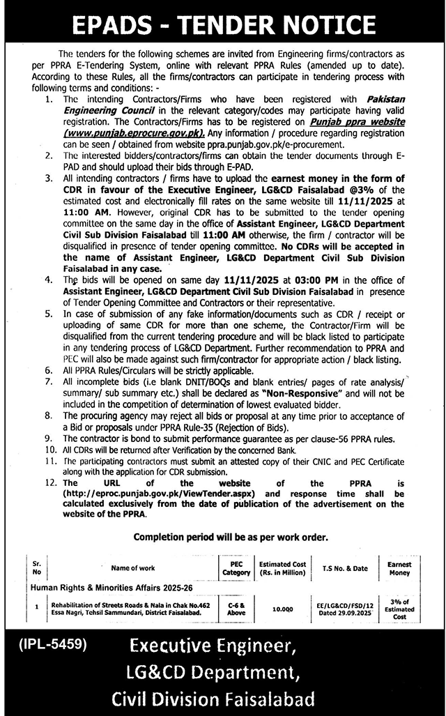 Water Supply Scheme / Drains / Sewerage, Roads, Repair & Maintenance, Engineering, Construction, Buildings