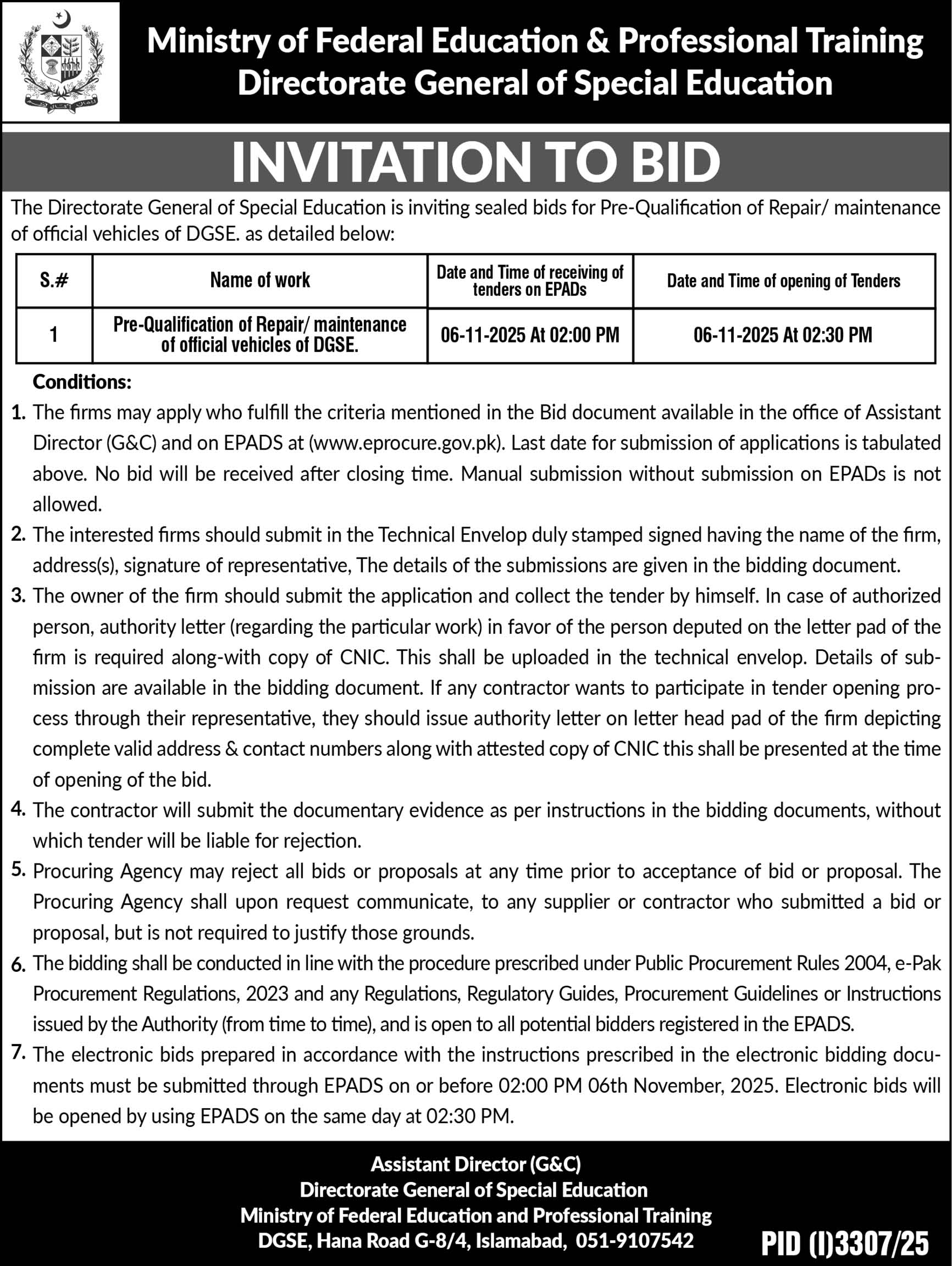 Transportation, Pre Qualification, General Order Supply, Automobiles/Vehicles, Auto Parts