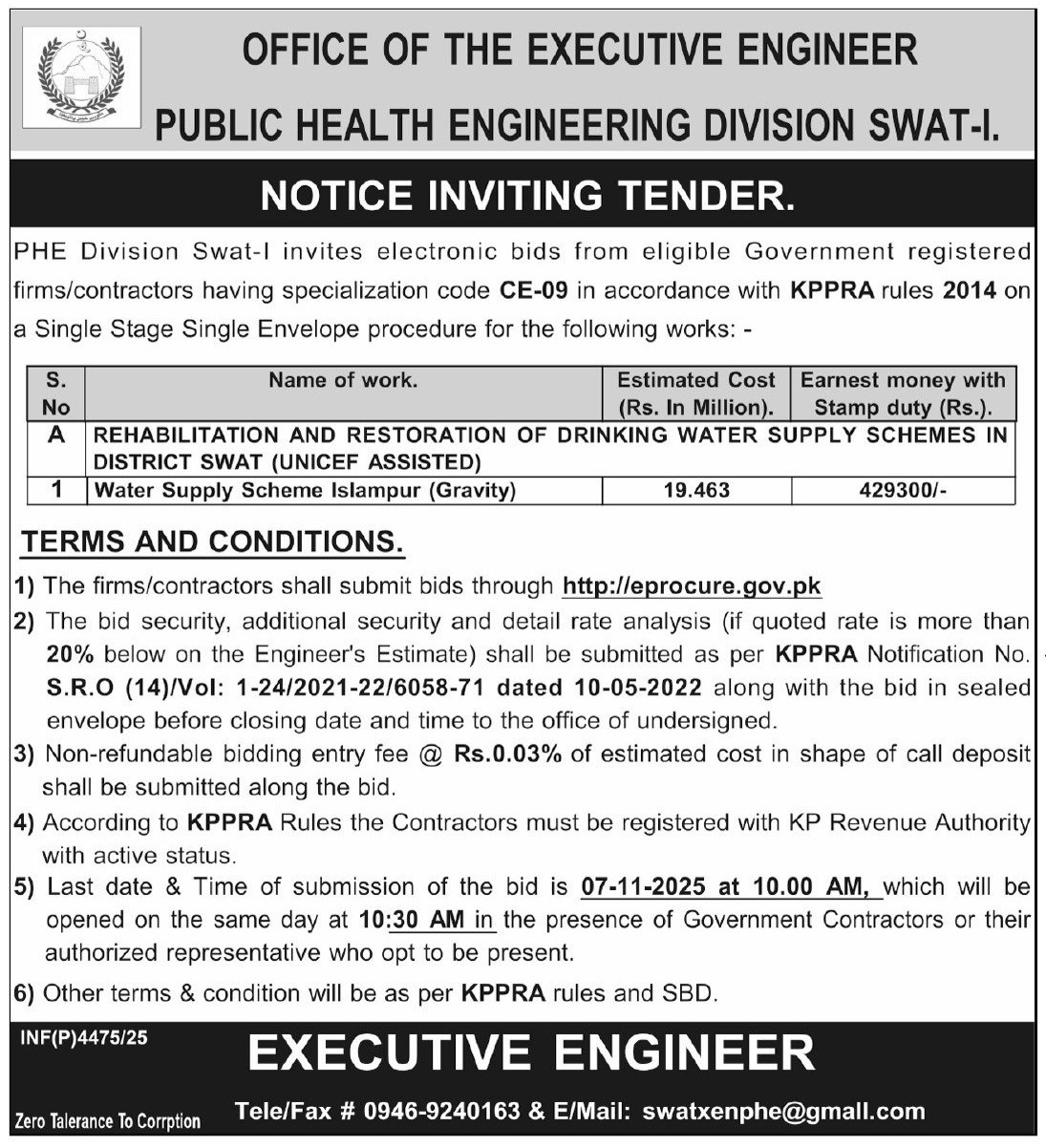 Water Supply Scheme / Drains / Sewerage, Roads, Repair & Maintenance, Engineering, Construction, Buildings
