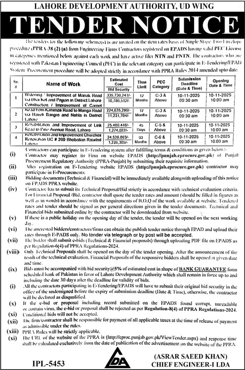 Water Supply Scheme / Drains / Sewerage, Roads, Repair & Maintenance, LDA, Engineering, Development Authority, Construction, Buildings