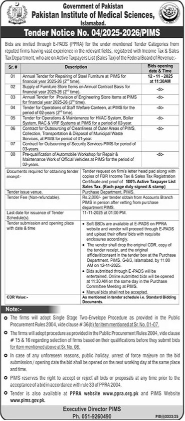 Transportation, Toll Tax, Steel, Services Required, Security, Mechanical, Machinery, Janitorial, Interiors, General Order Supply, Furniture, Electronics, Electrical, Baldia, Automobiles/Vehicles, Auto Parts, Auction, Air Conditioning