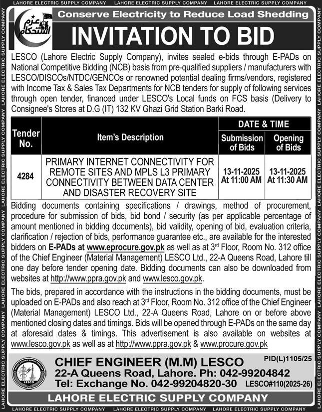 WAPDA, Software, Networking, Mechanical, Machinery, IT, General Order Supply, Electronics, Electrical, Computers/Accessories, Cables