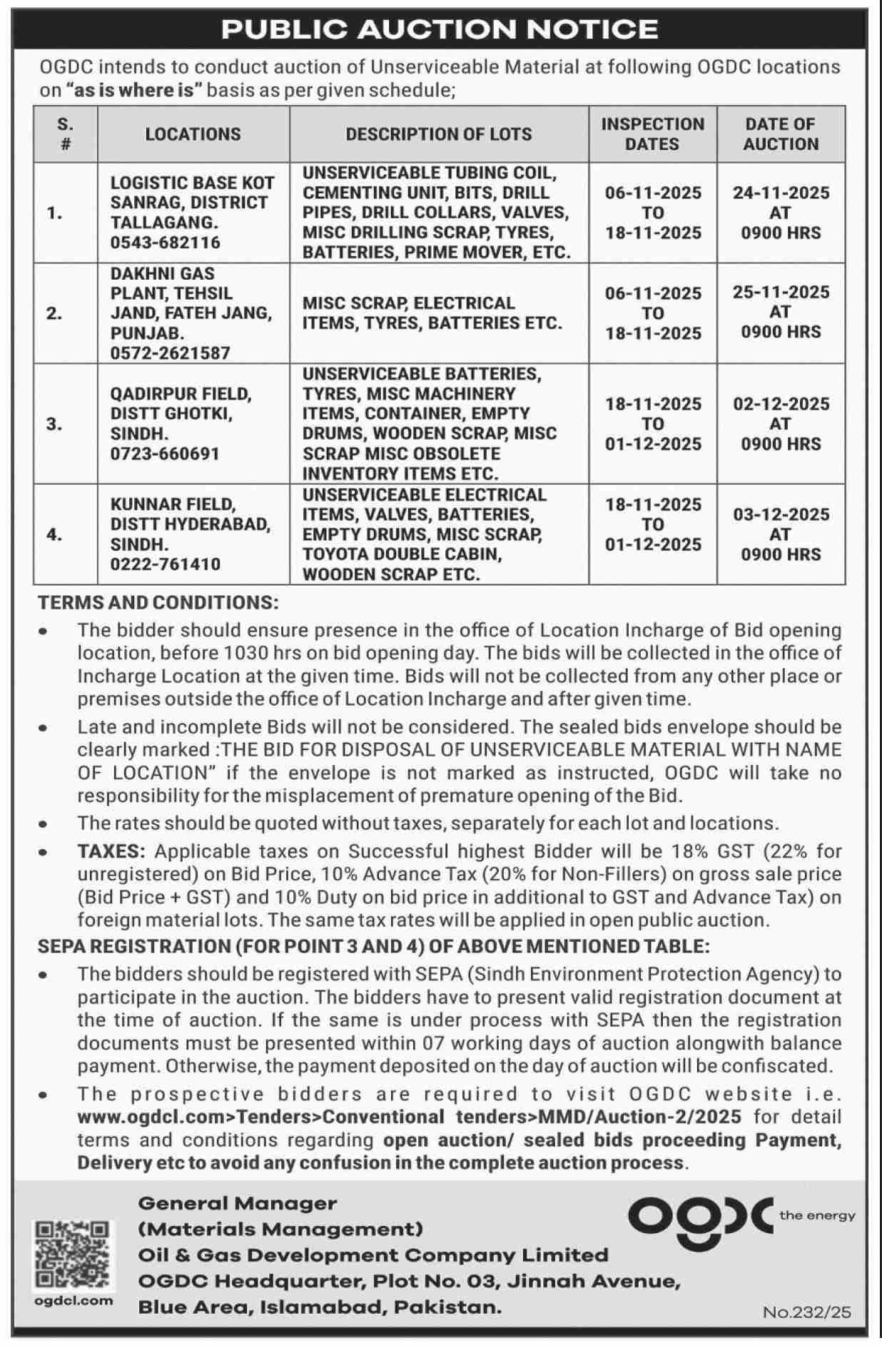 Toll Tax, Scrap Material, OGDCL, OGDCL, Baldia, Auction
