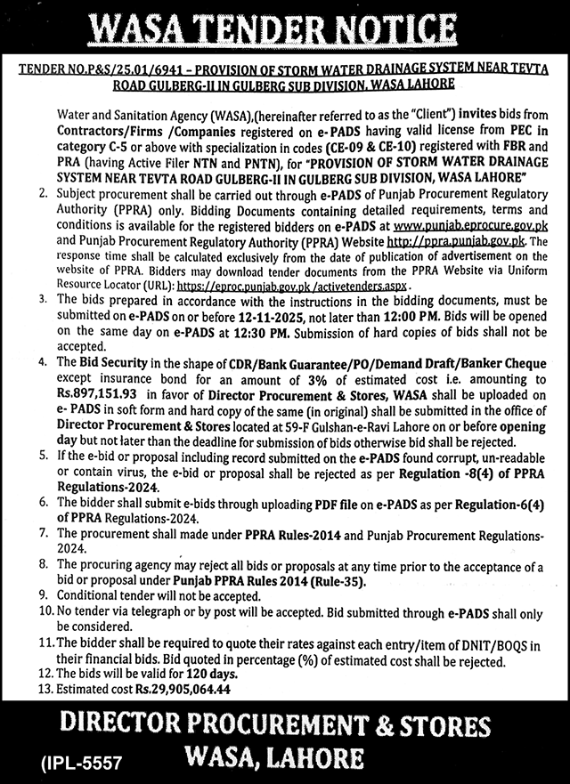 Water Supply Scheme / Drains / Sewerage, WASA, Roads, Repair & Maintenance, LDA, Engineering, Construction, Buildings