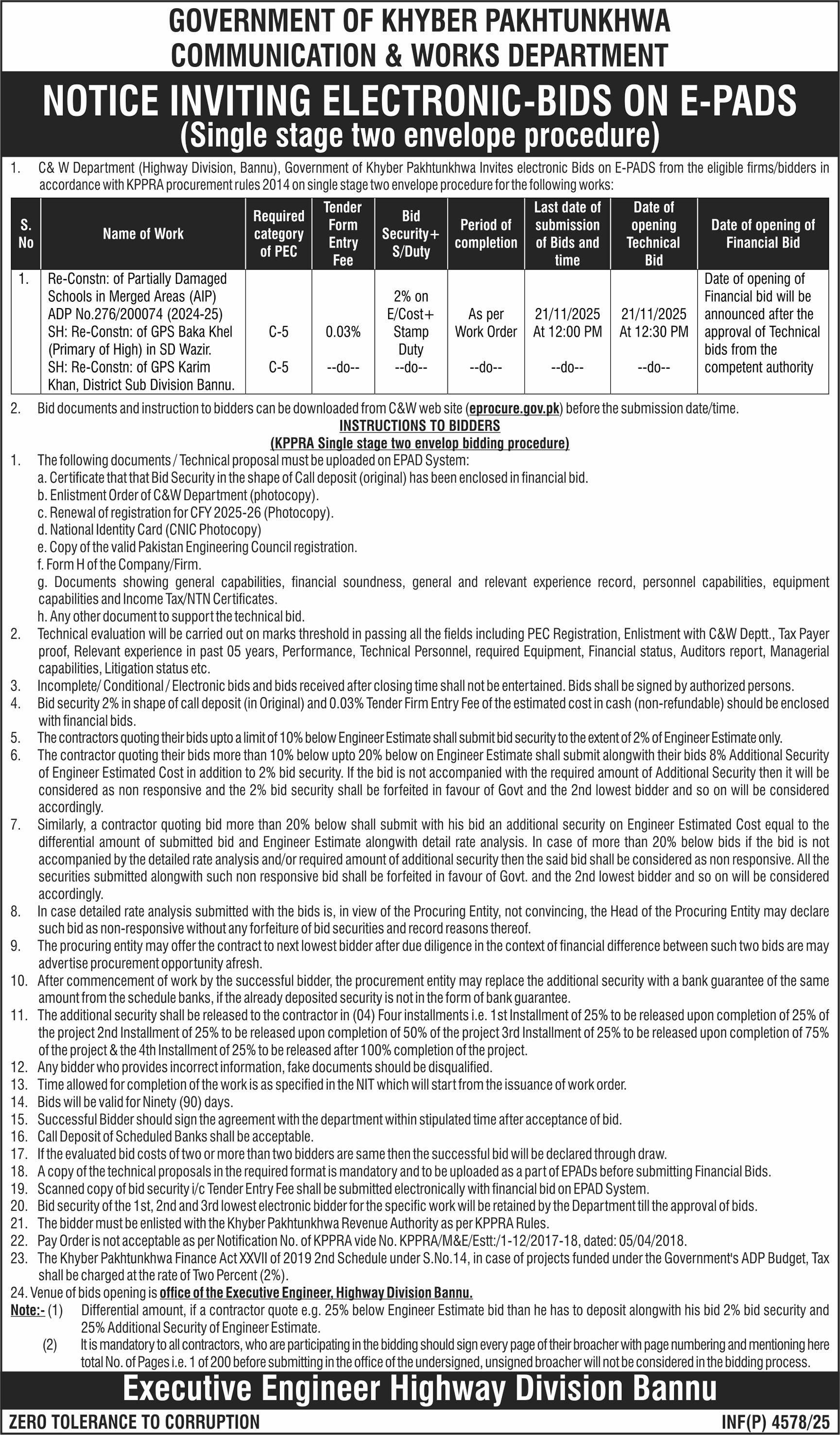 Water Supply Scheme / Drains / Sewerage, Roads, Repair & Maintenance, Engineering, Construction, Communication & Works, Buildings