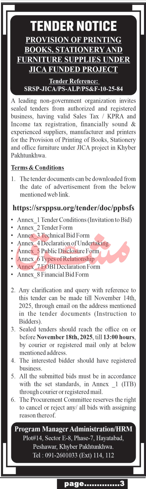 Tender Description