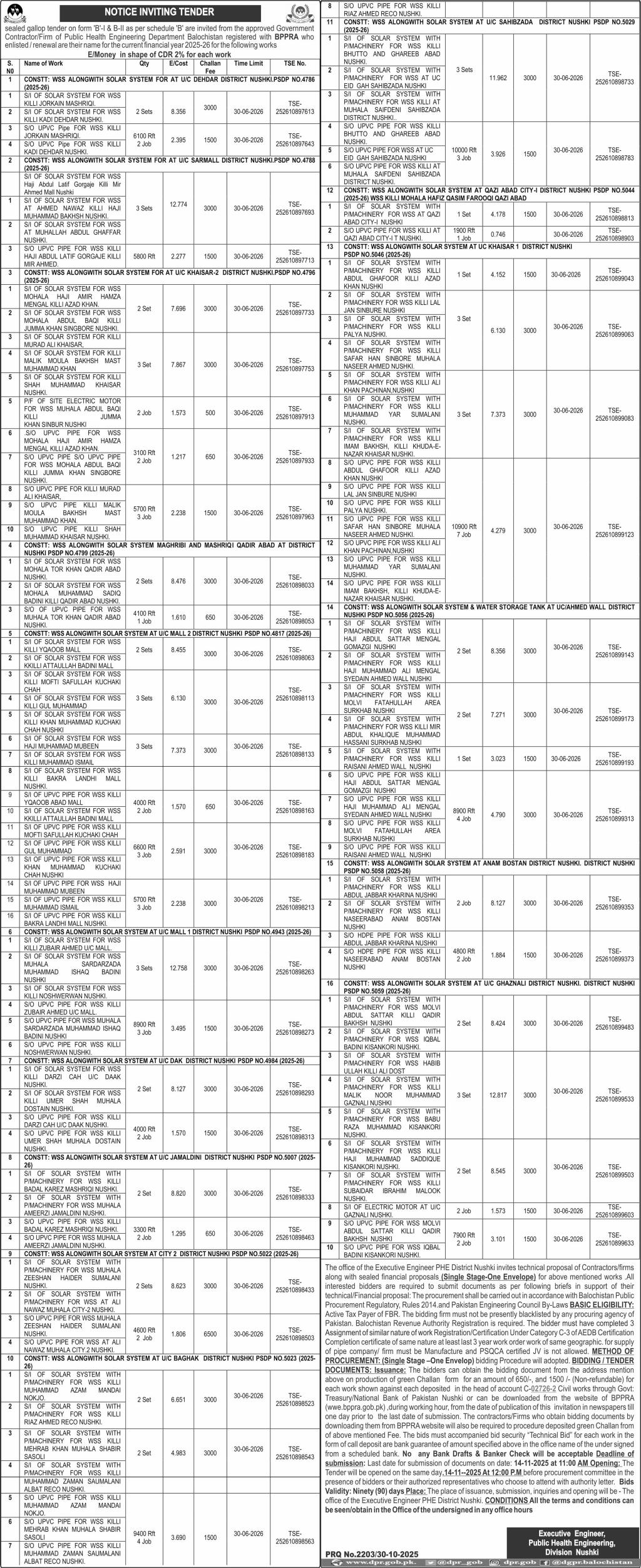 Water Supply Scheme / Drains / Sewerage, Tubewells, Roads, Repair & Maintenance, Pumps, Pipes, Mechanical, Machinery, General Order Supply, Engineering, Energy, Electronics, Electrical, Construction, Buildings